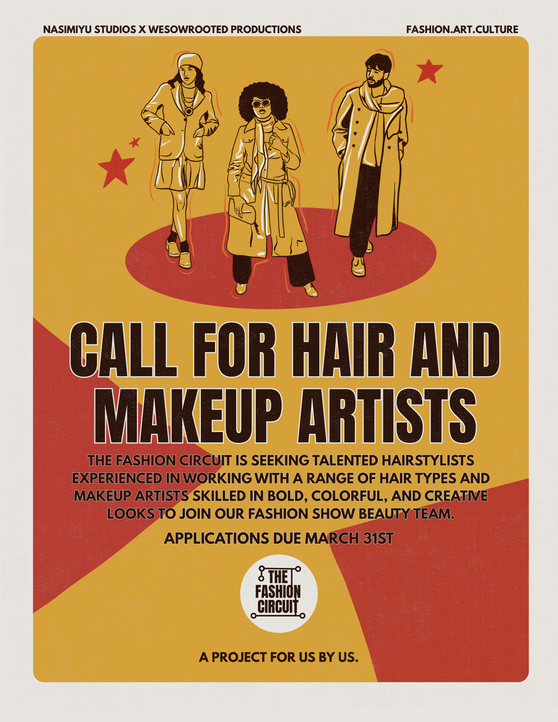 The Fashion Circuit is looking for hairstylists experienced with different hair types and makeup artists who love creating everything from classic glam to avant-garde moments.
